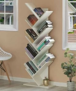 Keep your books accessible and neat while adding personality to your living space. This 9- tiered tree bookcase is durable enough to hold plenty of stackable books, magazines, or trinkets. For those book lovers, this tree bookrack will keep reading material neatly coordinated, super accessible, and uniquely displayed. In an office setting, the shelves can be piled with files, books, or office décor.