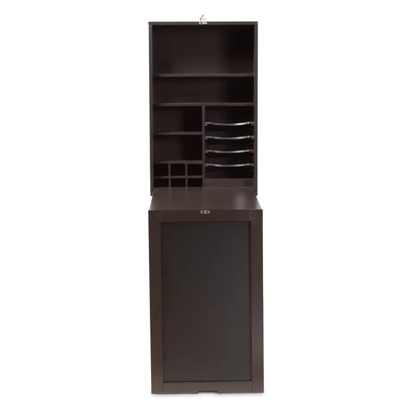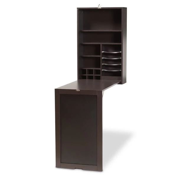 Ideal at conserving space while providing office necessities, the Millard folding desk is an outstanding solution to your work-from-home needs. This versatile piece is made from sturdy wood and is wall-mountable. Boasting remarkable storage space, this desk features 15 interior shelves and compartments to organize all your office essentials in one handy location. The Millard will arrive fully assembled and features a fold-out design that expands the capabilities of any room. Perfect for adding table space to a bedroom, living room, or office, the Millard folding desk elevates the potential of any space.