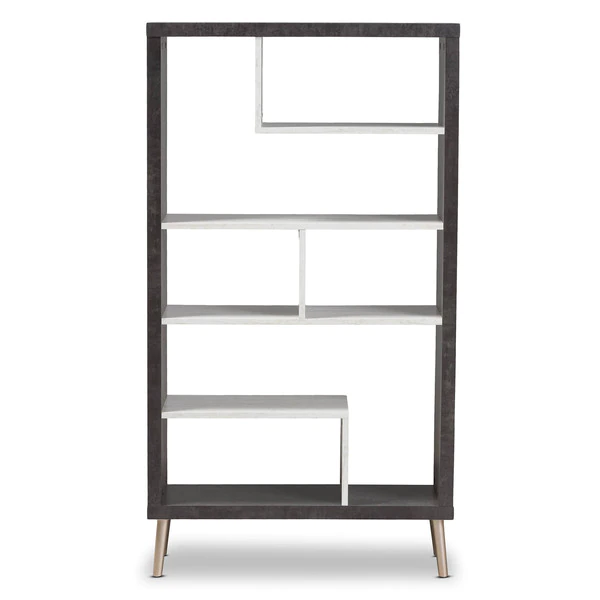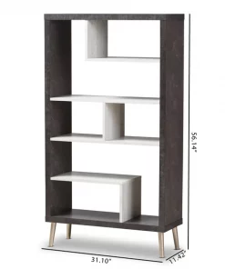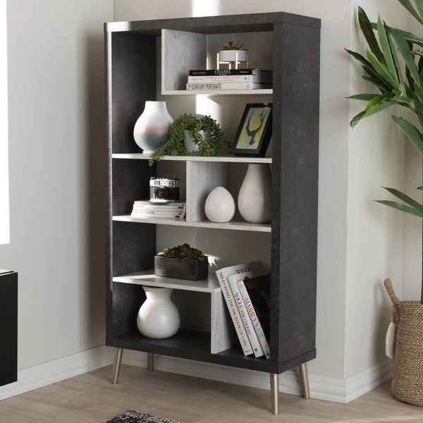 The trendy concrete optics go extravagantly through the living world and rewrite the fashion story. In addition to the trendy look, the Atlantic display shelf has a maximum of storage space, presenting your decorative items stylishly. Constructed of engineered wood with two-tone finishing in concrete and sycamore white, the Atlantic display shelf features open compartments for organization. The shelf requires assembly.