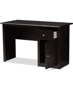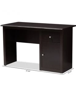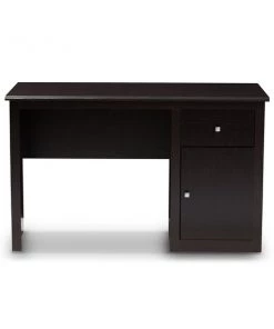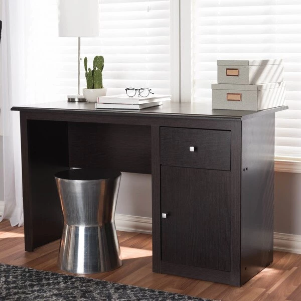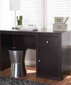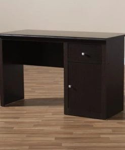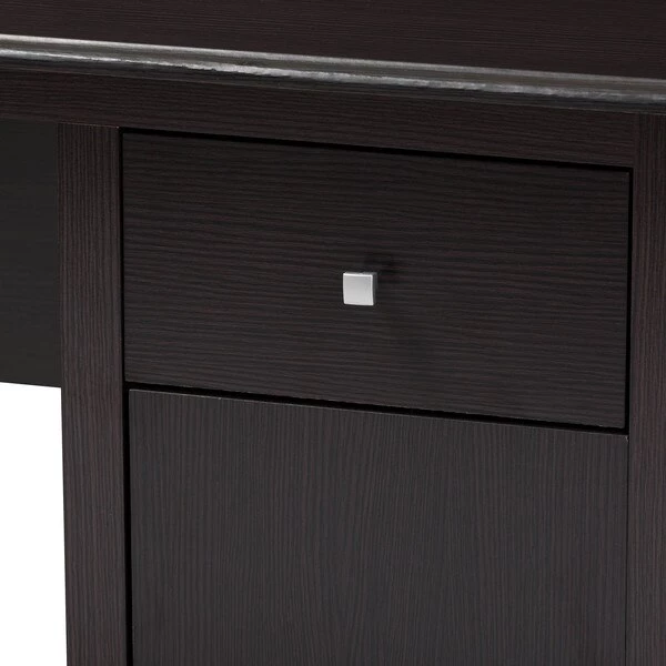 The practical, modern look of the Belora desk makes it an essential addition to your office. The modern and contemporary-inspired design is simple, sophisticated, and un-fussy. The Belora is finished in a wenge brown and has modern square knobs in a silver finish. The desk features a convenient pull out drawer on the right-hand side of the desk. Underneath the drawer, the Belora also features a storage compartment with a hinged door, perfect for books, files, or anything else that needs to stay organized. The practical, open workspace of the desk makes this an ideal addition to your private office, home office, den, or study. The Belora requires assembly.