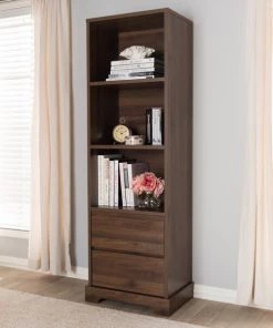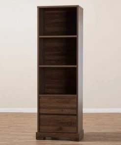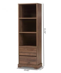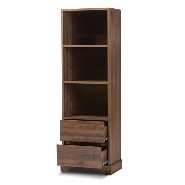 Create elegant accents with your office essentials with the Burnwood bookcase. Ideal for the bedroom, study room or office, the understated appearance of the Burnwood bookcase lends a sense of simple refinement to any space. Three wide shelves provide ample room for textbooks, ledgers and ornaments alike, while the two lower drawers provide concealed storage for privacy. Warm walnut finished veneer over the MDF boards and engineered wood makes the Burnwood bookcase an eye-catching addition to your home or office. Stock your shelves with a mixture of books, framed photos and a vase of bright blooms to make the best use of this practical and decorative piece. The Burnwood requires assembly.