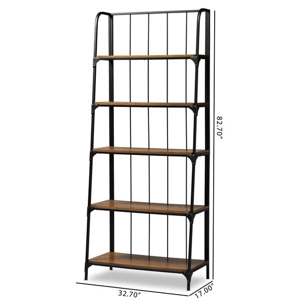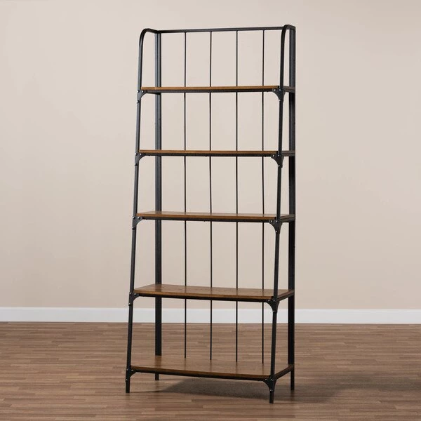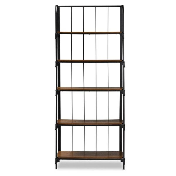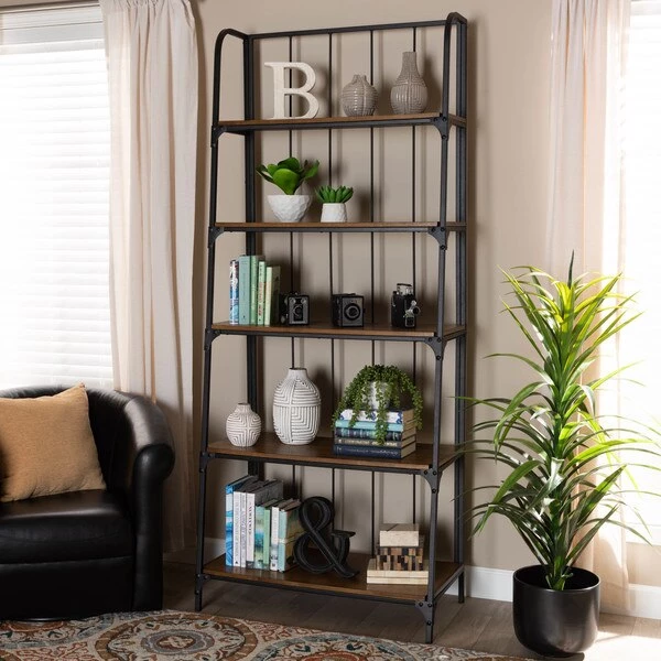 Integrate rustic style into your living space seamlessly with the Ceren shelf. Built from sturdy metal, the Ceren features a matte black finish for a vintage look. The metal frame is paired with five distressed wood shelves, providing ample space to display all your favorite books and knick-knacks. Vertical black bars provide back support and give the piece a cool industrial vibe. The Ceren shelf requires assembly.