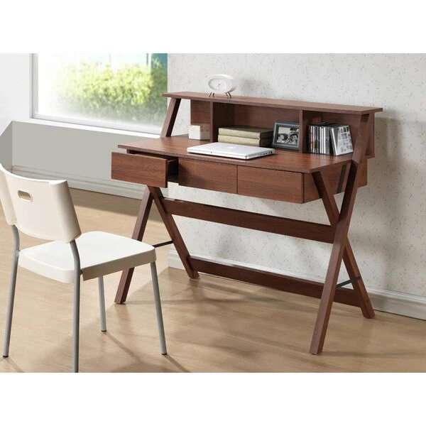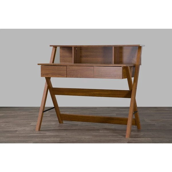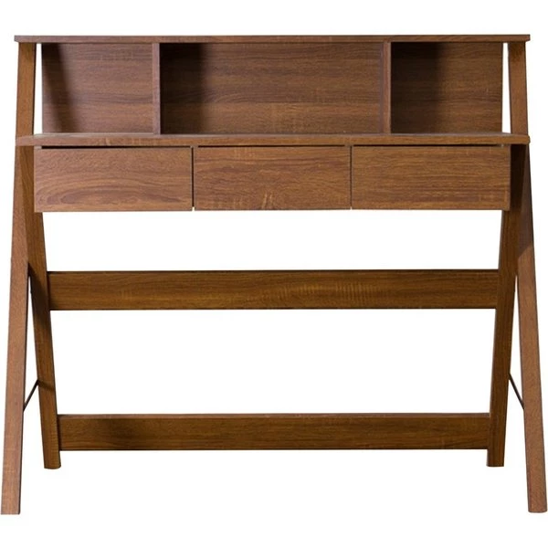 Get the most out of your space with our Crossroads II Writing Desk. Vertically oriented design reduces footprint while maximizing storage. The rectangular pattern is softened slightly via a smooth-edged top. Stylish pull-handle-free drawers make a contemporary statement. A dark Sonoma oak-veneer finish matches well with many motifs.
