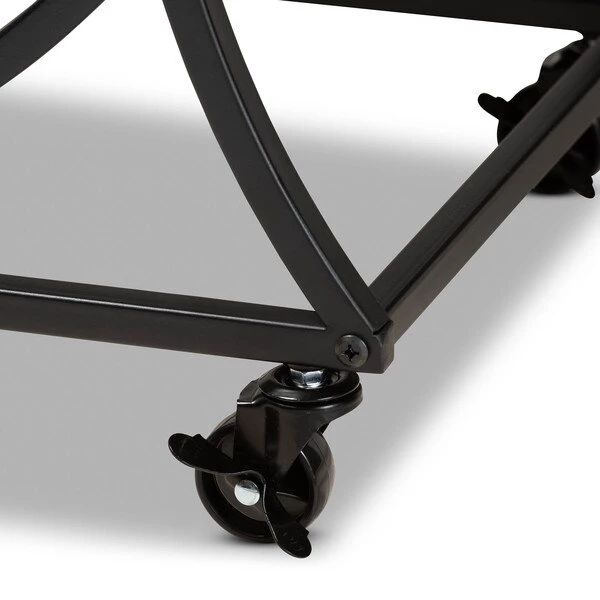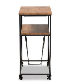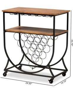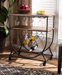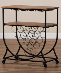 Enhance your space with the industrial warmth and character of the vintage inspired Dania wine cart. The Dania is comprised of a black finished metal frame fitted with two walnut brown finished wood shelves. The built-in wine rack holds 15 bottles of your finest wines, while the stemware rack provides secure storage for glasses. Requiring assembly, the Dania is also fitted with wheel casters to provide smooth mobility. A chic and functional wine storage solution, the Dania wine cart easily upgrades the modern home.