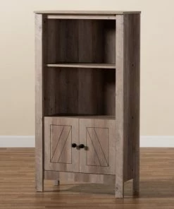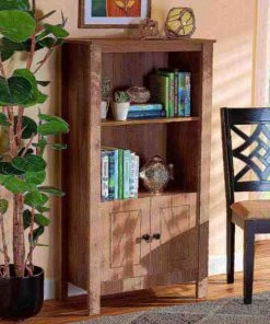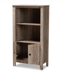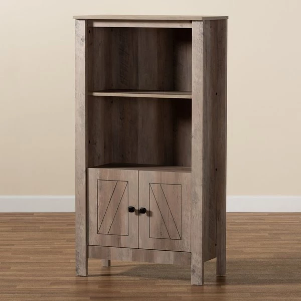 Add the charming crisp lines of the Derek bookcase to your space for an elegant solution to your storage needs. Made in Malaysia, the Derek is comprised of sturdy wood showcasing a natural oak brown finish. Two external shelves create an excellent display for books and decorations, while one internal shelf supplies concealed storage. Requiring assembly, the doors feature an exquisitely carved design, as well as black finished square metal knobs for added visual appeal. An excellent pedestal for your collection, the Derek bookcase noticeably upgrades any space.