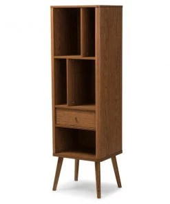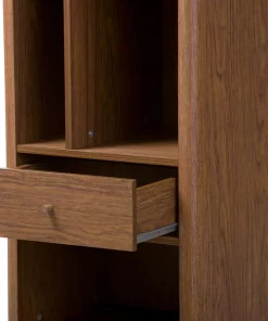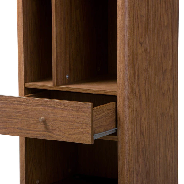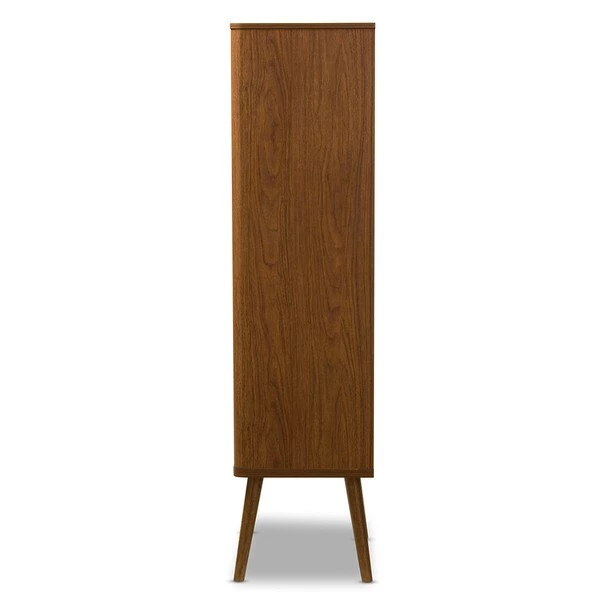 Organize your office or home office with the Ellingham sideboard storage cabinet, its contemporary attitude imparting modern charm into any interior. Constructed of a combination of MDF and particle board for long-lasting sturdiness, the Ellingham is finished with walnut faux wood grain finishing for a smooth and mid-century feel. Used in both office and home settings, the Ellingham fits exceptionally well into tight spaces, providing storage space for books and files. The spacious airy feel of the Ellingham is attributed to four of its tall splayed legs which raise the body of the cabinet off the floor occupying minimal space both physically and visually. The Ellingham respectfully takes into consideration the colors, rounded lines design and the size, allowing it to be used as bookcase or file cabinet in your home office or as a display shelf at the entry way. The Ellingham requires assembly.