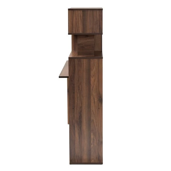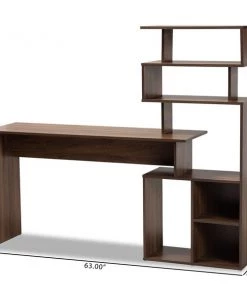 Invigorate your office space with the stunning design of the Foster desk. Made in Malaysia, the Foster features a unique wood frame displaying a warm walnut brown hue. Two upper tiers of artistic shelves create a striking pedestal for decorations, while four lower shelves provide convenient storage. Requiring assembly, the Foster features an open back for easy cord management. With striking visuals and fantastic utility, the Foster desk is a refreshing addition to any space.