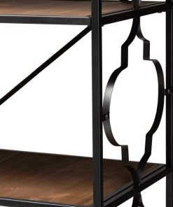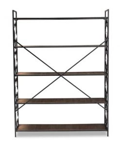Spacious shelving and exquisite quatrefoil accents make the Mirna bookcase a chic addition to any space. A sturdy black iron metal frame supports five large shelfs crafted from MDF wood, ideal for displaying books, pictures frames, and more. Quatrefoil embellishments on the sides of the bookcase add a decorative touch, while a crisscross stretcher on the back of the bookcase provides structural support. The Mirna bookcase requires assembly.
