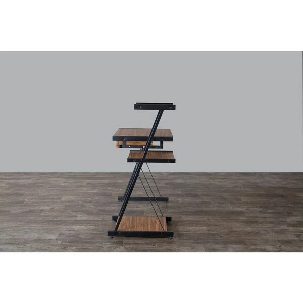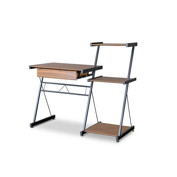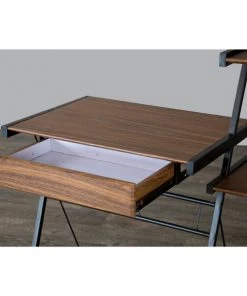 The New Semester Computer Desk is as contemporary as the latest software! Enjoy an uncluttered approach to computer-related tasks. Modern, straightforward design incorporates a coffee-and-black color combo designed to add some pizzazz to any home office. Set a flat-screen monitor on the table top and place its keyboard on the pull-out tray. Side shelves provide the perfect spot for printer, scanner, modem and processor. Black powder-coated steel tube offers firm footing and great looks.
