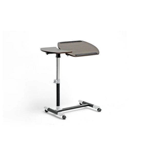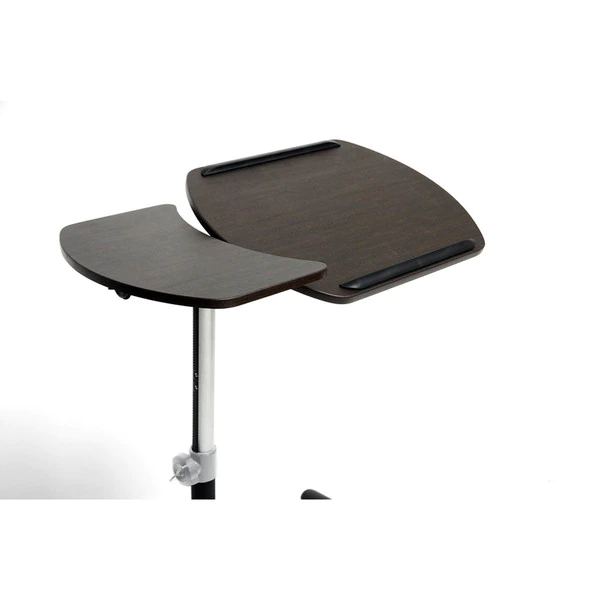 The Olsen laptop features four black caster wheels, adjustable table height, and an adjustable tilt control for the angle of the tabletop. The base is made of steel, which is finished with black powder-coating for style and durability.