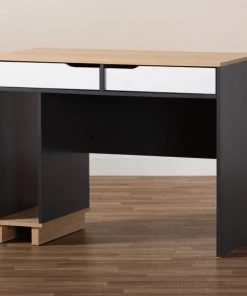 Add a bold look to your office with the Reed desk. This wood desk features grey, oak, and white finishes for a fun, playful feel. Two spacious drawers provide ample space to store pens, paper, and more. Cut-out drawer handles add a modern look. The Thera also features a vertical compartment to hold books or a CPU. This stylish desk is well suited for a commercial office or home office. The Reed desk requires assembly.