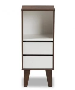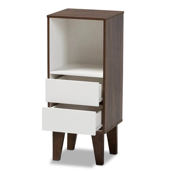 Upgrade any corner in your home with the quaint design of the Senja bookcase. This wood bookcase features clean lines and a two-tone white and walnut brown finish for a cool, contemporary look. An open shelf provides space to display books and knick-knacks, while two drawers provide room to store chargers and miscellaneous items. Its compact size makes it well suited for small spaces. The Senja bookcase requires assembly.