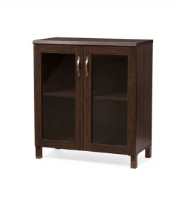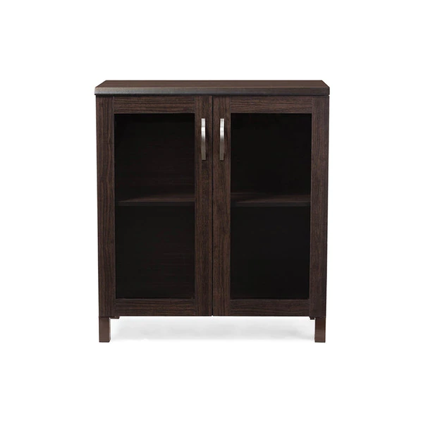 Offering a clean minimalist aesthetic perfectly suitable for modern and contemporary living spaces, the Sintra Sideboard Storage Cabinet provides the perfect spot for your latest decorative acquisition or important documentation. Give your interior serenity and a clutter-free aesthetic using the stylish Sintra Sideboard Storage Cabinet , a functional storage cabinet dressed in dark brown finish and featuring a solid minimalist construction incorporating two glass doors and two shelving areas that offer the space you need for storage purposes, while the top part of the cabinet can effortlessly showcase several adornments such as vases, framed photos and decorative items. The Sintra requires assembly.