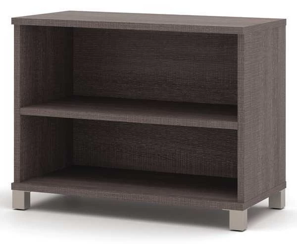 Bookcase, 2 Shelf, Pro-Linea Series, Number of Shelves 2, Width 35 15/32 in, Height 28 13/32 in, Depth 19 1/2 in, Color Bark Gray, Material Melamine/Particle Board, Shelf Capacity 50 lb, Adjustable Shelf Adjustments, No Casters, Assembly Required, Standards ANSI/BIFMA, ISTA, Includes Hardware, Parts, User Manual