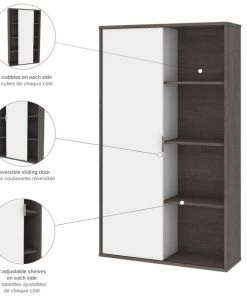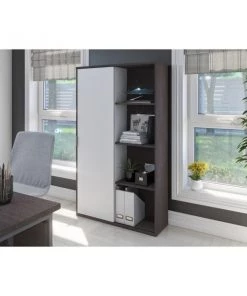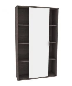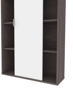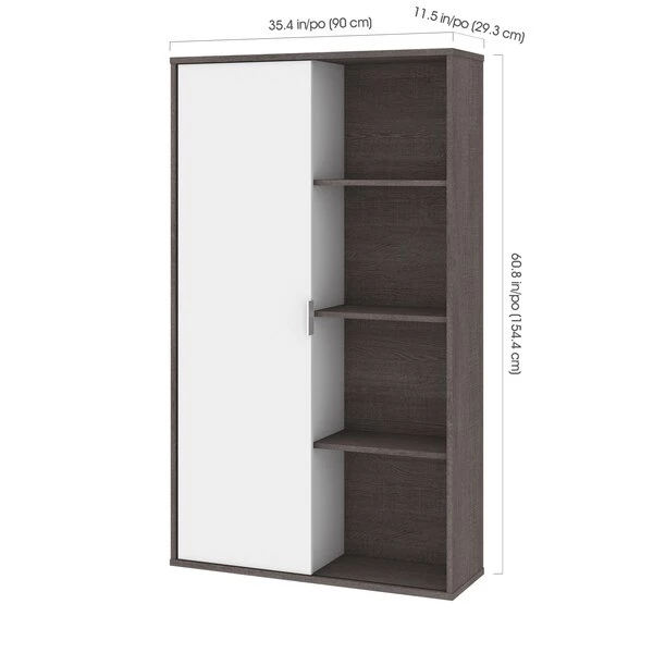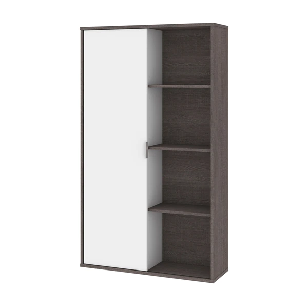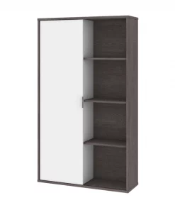 The Aquarius collection provides solutions for organizing your office in style. With its clean lines and metal accents, the contemporary pieces will help you get that wow effect to impress clients and employees alike. This bookcase is ideal for saving space in tight areas. Interior is divided vertically into 2 sections (16. 7" W) with 3 adjustable shelves each to increase storage possibilities. The sliding door allows efficient space utilization. Leg levelers to adapt to any floor irregularities. Made from high-density commercial-grade particle board, compliant with CARB phase 2. The bookcase meets or exceeds ANSI/BIFMA performance standards.