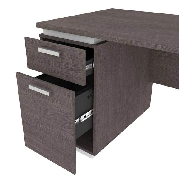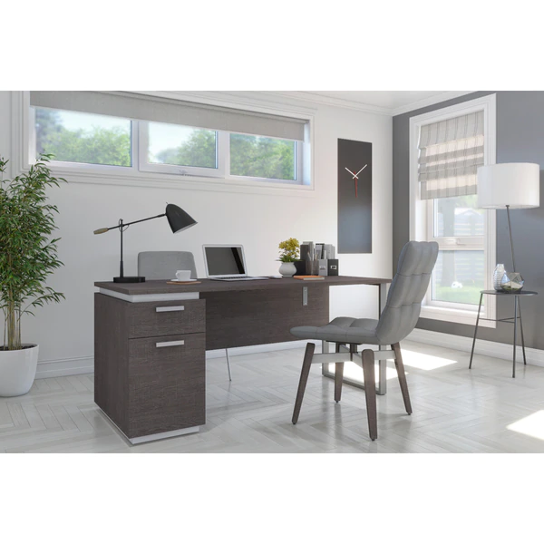 The Aquarius collection provides solutions for organizing your office in style. With its clean lines and metal accents, the contemporary pieces will help you get that wow effect to impress clients and employees alike. Offers 1 utility drawer (12. 1" W x 2. 2" H x 15" D) and 1 file drawer (12. 1 W x 8. 75" H x 15" D) with letter/legal filing system. Drawers features full-extension ball-bearing slides for smooth operation. Durable 1" commercial grade work surface. Solid U-shaped steel leg. Leg levelers to adapt to any floor irregularities. Finished back. Made from high-density commercial-grade particle board, compliant with CARB phase 2. The desk meets or exceeds ANSI/BIFMA performance standards. Top can support up to 150 lb.