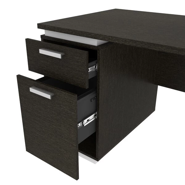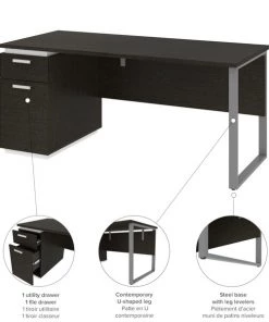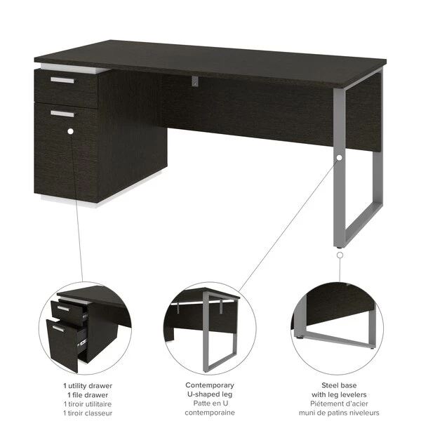The Aquarius collection provides solutions for organizing your office in style. With its clean lines and metal accents, the contemporary pieces will help you get that wow effect to impress clients and employees alike. Offers 1 utility drawer (12. 1" W x 2. 2" H x 15" D) and 1 file drawer (12. 1 W x 8. 75" H x 15" D) with letter/legal filing system. Drawers features full-extension ball-bearing slides for smooth operation. Durable 1" commercial grade work surface. Solid U-shaped steel leg. Leg levelers to adapt to any floor irregularities. Finished back. Made from high-density commercial-grade particle board, compliant with CARB phase 2. The desk meets or exceeds ANSI/BIFMA performance standards. Top can support up to 150 lb.