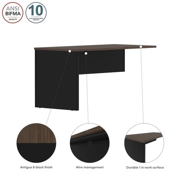 Thanks to this sturdy Return Table, you can extend your work surface by combining it to another desk from the Connexion collection. A grommet hides cables and provides easy access to electrical outlets. The Return Table’s attractive two-tone design adds a touch of style to your space. This Return Table is