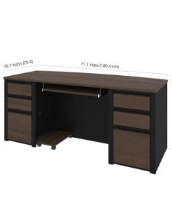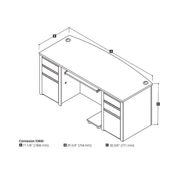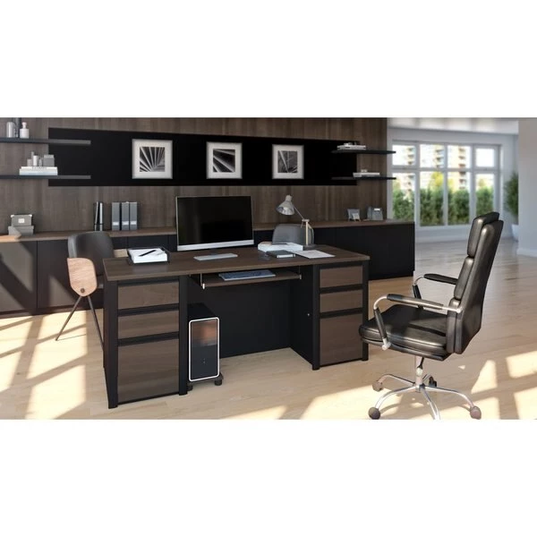With this Executive Desk, you have enough space for your work equipment and your paperwork. Its simple, classic look complements the decor of any room. Its compact design makes it perfect for smaller spaces. The drawers allow you to keep your desk clean and organized, and the lockable drawers keep your personal documents secure. The grommets allow you to manage your cables and wires. The keyboard tray allows you to work comfortably. This office workstation meets ANSI/BIFMA quality standards for safety and performance.
