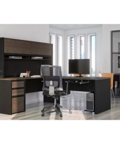 Connexion is a contemporary and durable collection that features a wide variety of configuration options that will adapt to your specific needs. The desk is made of durable 1" commercial grade work surface with melamine finish that resist scratches, stains and wear. It features an impact resistant thick PVC edge. Grommets and a rubber strip are available on the station for efficient wire management. The credenza, the return table and the hutch meet or exceed ANSI/BIFMA performance standards. The hutch for credenza offers two flip up doors, large closed storage space, efficient wire management and two large paper shelves. The doors are fitted with strong lift up hardware. The pedestal offers two utility drawers and one file drawer with letter/legal filing system. One lock secures bottom two drawers. The drawers and the keyboard shelf are on ball-bearing slides for a smooth and quiet operation. The station is fully reversible.