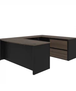 Connexion is a contemporary and durable collection that features a wide variety of configuration options that will adapt to your specific needs. The desk is made of durable 1" commercial grade work surface with melamine finish that resist scratches, stains and wear. The bow front desk offers additional space. It features an impact resistant thick PVC edge. Grommets are available on the station for efficient wire management. The executive desk, the credenza, the hutch and the bridge meet or exceed ANSI/BIFMA performance standards. The oversized pedestal offers two file drawers with letter/legal filing system. The drawers and the keyboard shelf are on ball-bearing slides for a smooth and quiet operation. The station is fully reversible.