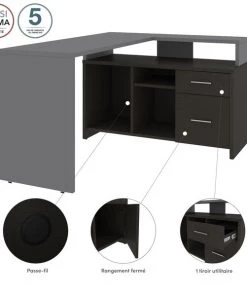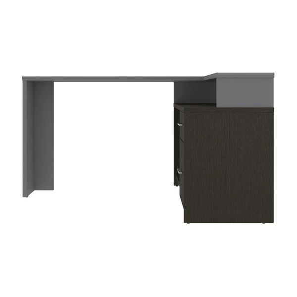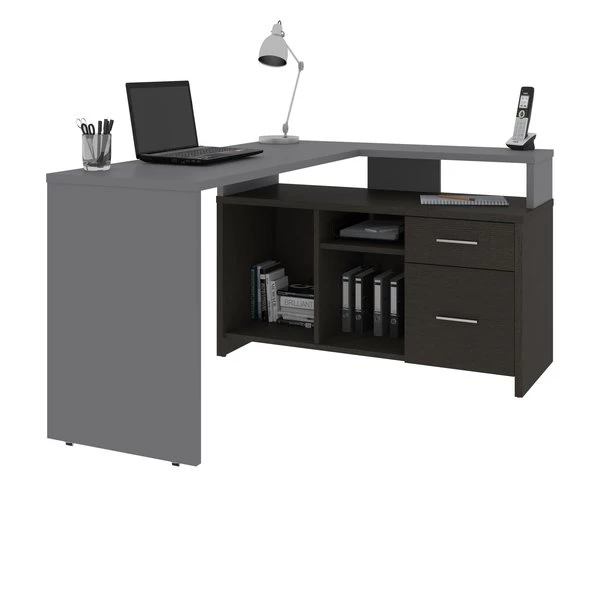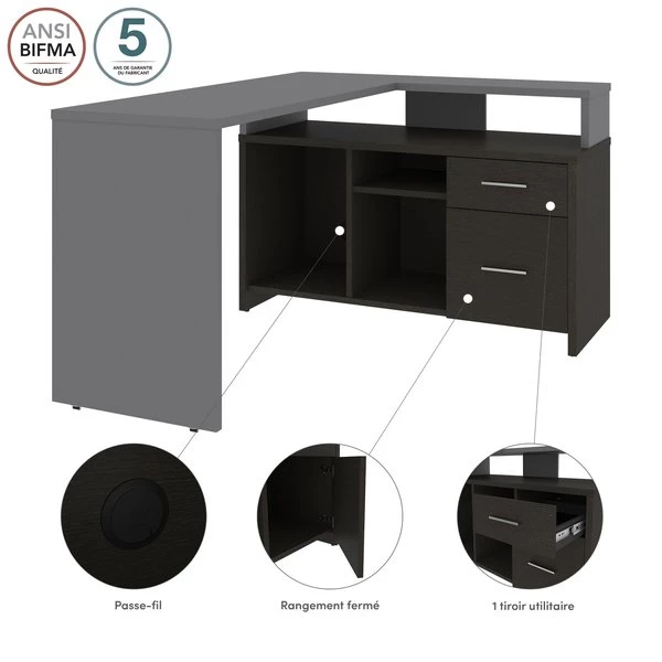 The durable work surface is designed to resist everyday damage to provide you with a professional-looking desk for many years to come. Easily keep your desk organized and conceal pesky wires and cables thanks to a handy wire grommet. Store small office supplies in the convenient box drawer or on the wide open shelf found just beneath the work surface. Use both open storage compartments and the closed storage area to store larger office equipment. The adjustable shelf in one of the open storage areas allows you to configure your storage space to meet your needs. Tested to meet ANSI/BIFMA quality standards for safety and performance.