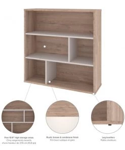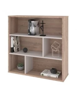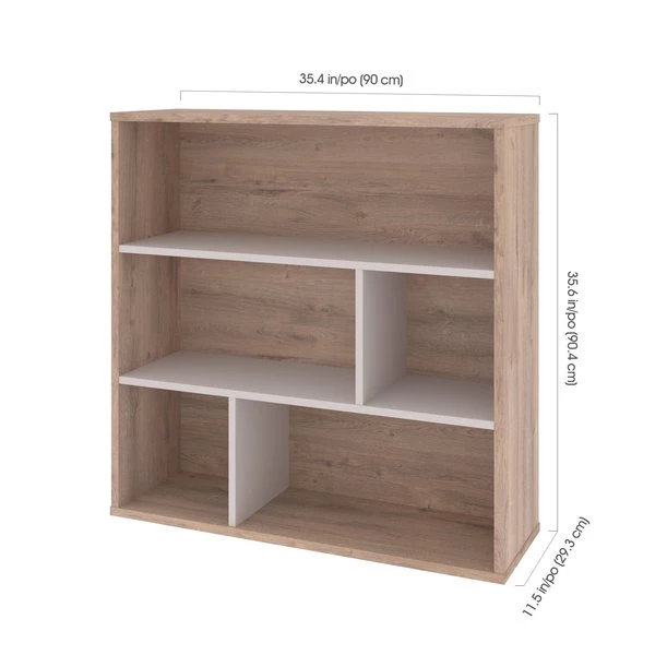MODERN DESIGN: With its minimalist design and clean lines, this asymmetrical two-tone bookshelf will give a modern look to any room. The unit is reversible and is equipped with leg levellers. GOOD STORAGE: Features five 10. 9” high storage areas to maximize your storage options. It provides plenty of space to showcase your vases, picture frames, keepsakes, candles, etc. Each level can support up to 25 lb of distributed weight. VERSATILE: Our bookcase can be used on its own as a low shelving unit or it can be attached to the top of another FOM Shelving Unit to form a high unit. It will embellish any room: living room, dining room, bedroom, home office, etc. NOTE: 2 people are required for assembly. 35. 4" W x 11. 5 " D x 35. 6" H, high density commercial-grade particle board, compliant with Carb phase 2. A fixture for attaching the Shelving Unit to the wall is provided. Our Shelving Unit’s compact design makes it the perfect display or storage solution for small spaces such as studios, living rooms, bedrooms or home offices. The unit is reversible so you can change the position of the dividers on the two bottom shelves. Thanks to its unique design, this unit can be stacked on top of another similar unit to form a 70. 5-inch high bookcase. To do this, you simply remove the top board of one unit, place the second unit on top of it, then you attach them together. All the necessary hardware is included. You can even use Fom Shelving Units as building blocks to make a wall of asymmetrical bookshelves. When you want to change your decor, you can simply take the units apart, then rearrange them in a different configuration!