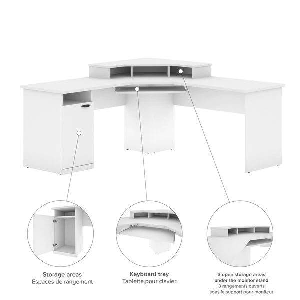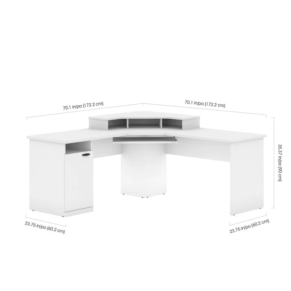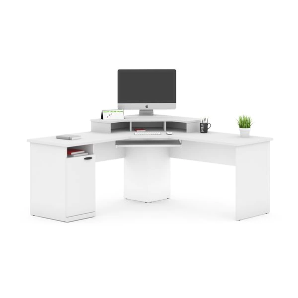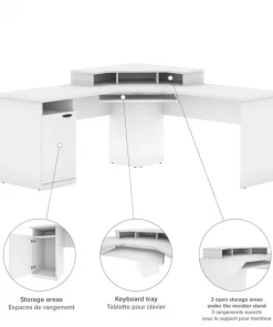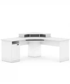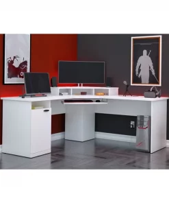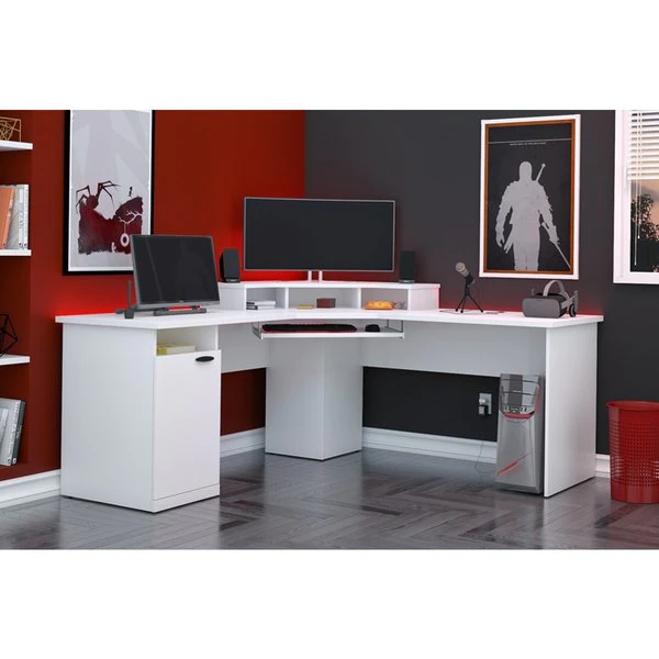 This unique corner design is ideal for creating a private workstation in a busy office or a gaming corner in your home. The sturdy and durable work surface resists the wear and tear from a busy workday or an intense gaming session. The large work surface easily accommodates up to 3 monitors, which makes the desk ideal for jobs that require multiple monitors or for gaming setups. The open and closed storage areas on the pedestal are perfect for storing office or gaming supplies of various sizes. The keyboard tray frees up the work surface and helps you work from a comfortable position. The large wings and deep center unit ensure that you have ample space for your monitors.