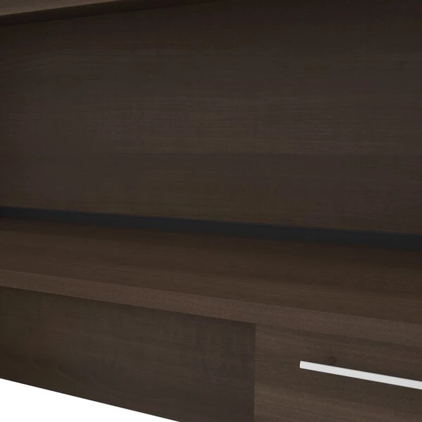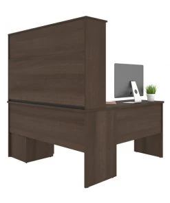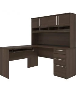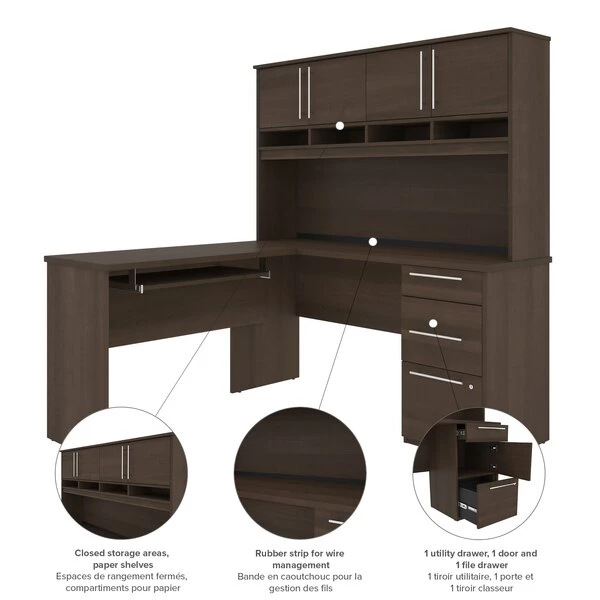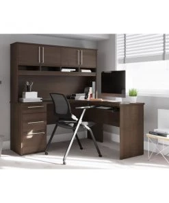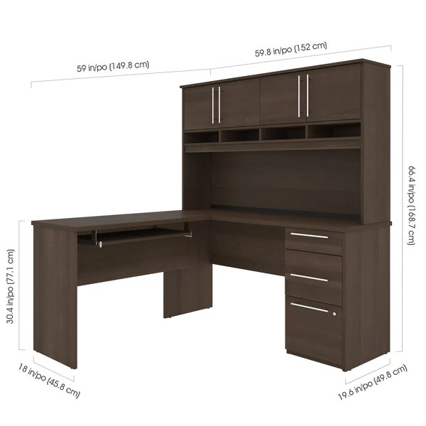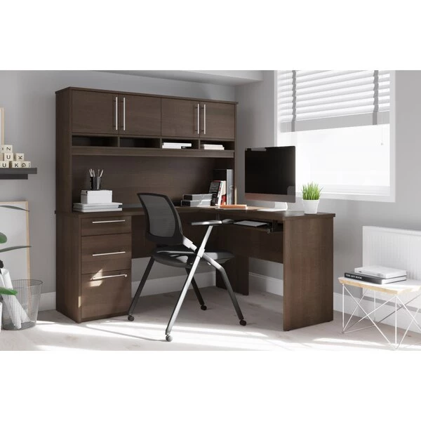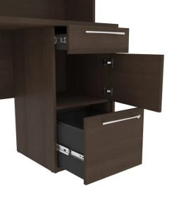 Innova Plus conjugates working and living with style. It offers various storage possibilities for an organized work environment. Your office space will feel cohesive and stylish with the pieces from this collection. Durable 1 in. commercial grade work surfaces with melamine finish that resist scratches, stains and wear. The pedestal offers one utility drawer, one cabinet and one file drawer with letter/legal filing system. Drawers and keyboard shelf are on ball-bearing slides for smooth and quiet operation. One lock secures the file drawer. The hutch offers closed storage, paper management shelves and a rubber strip for efficient wire management. Fully reversible unit. Finished back.