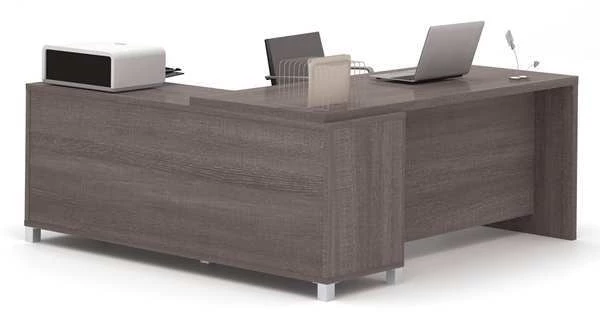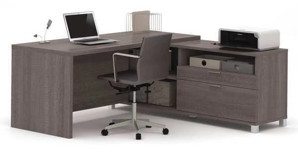 Bestar L Shaped Desk, 71.1" D, 71.1" W, 29.9" H, Bark Gray, Melamine