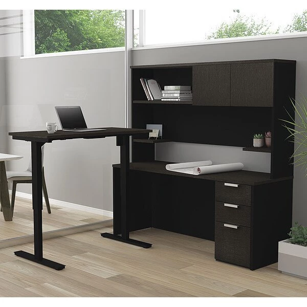 - Item: Height Adjust L-Desk,w/Hutch,Grey/Blk