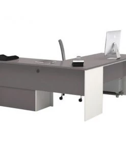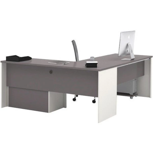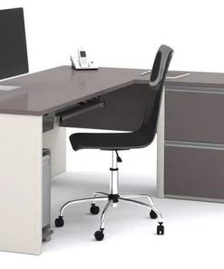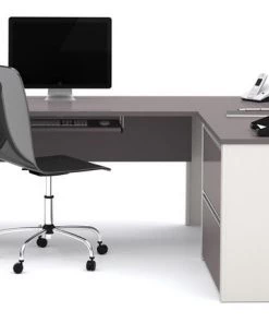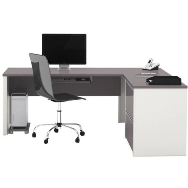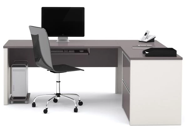 Bestar L Shaped Desk, 82.9" D, 71.1" W, 30.4" H, Slate/Sandstone, Melamine