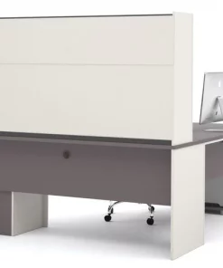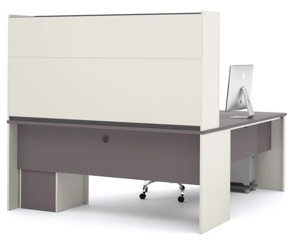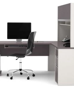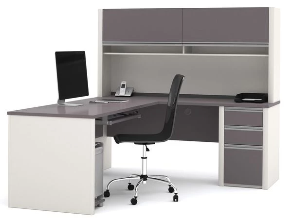 Bestar L Shaped Desk, 82.9" D, 71.1" W, 65.9" H, Slate/Sandstone, Melamine