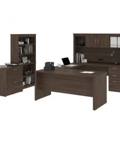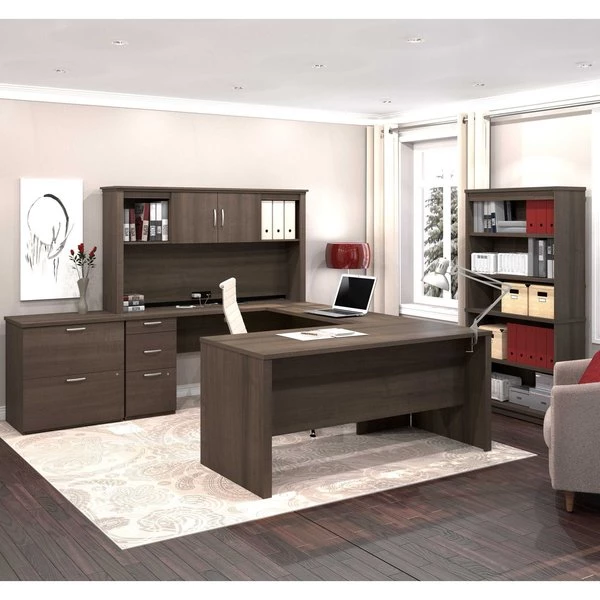 Easily furnish your entire office in one shot with this convenient bundle. With its extensive work surface, the Desk offers plenty of space to spread out and can hold your office equipment. The Hutch even features solutions to charge your electronics and organize your cables and wires. You can neatly store reference materials and books in the Bookcase. Safely put away important files and documents in the Lateral File Cabinet’s lockable drawers to protect sensitive information.