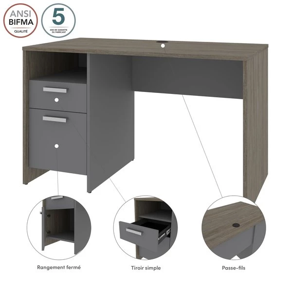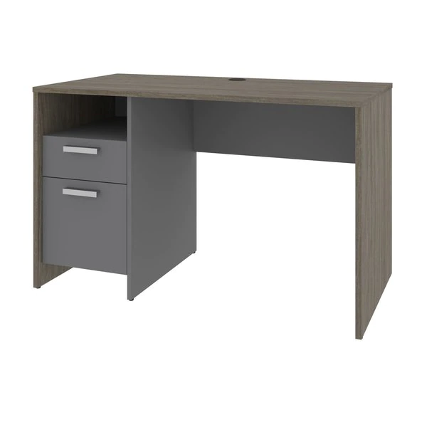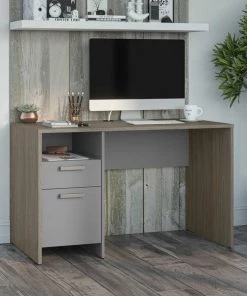 This Small Desk is designed to help you set up an efficient workspace in a room with limited space. Ideal for home offices, this desk features a sturdy desktop that resists everyday damage. Easily conceal your computer cords with an efficient wire grommet. One fixed shelf supports up to 25 lb and provides a place for small office supplies. A closed storage compartment helps you organize larger items while 1 box drawer holds pens or notepads. The drawer glides on smooth ball-bearing slides for easy and quiet use. The Computer Desk is finished on all sides so you can place it anywhere when setting up your home office or study space. Enjoy exceptional value at an affordable price!