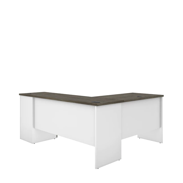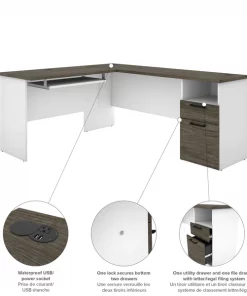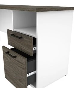 The Norma Collection is ideal for any type of office. You can easily arrange the pieces in this collection to fit your needs by adding a desk shell or a hutch. Keep your space organized with the multiple storage options. Not only will your space be clutter-free, it will also feel modern and stylish thanks to the two-tone design and the metal handles with black finish. Enhance your space with this affordable collection! 1" thick work surface with a melamine finish that resists scratches, stains and wear. 1 utility drawer, 1 file drawer with letter/legal filing system, 1 open storage area and one 3⁄4 extension keyboard tray. One lock sucures the two drawers. Drawers and keyboard shelf on ball-bearing slides for smooth operation. Ample work surface equipped with a waterproof outlet for 2 USB ports and 1 power socket. 2 grommets for efficient wire management. Finished back. Levelers to adapt to any floor irregularities. PVC edges. Made of laminated, high-density commercial-grade particle board, compliant with Carb phase 2. Meets or exceeds ANSI/BIFMA safety and performance standards. Fully reversible unit. Desk surface supports up to 100 lb, utility drawer up to 15 lb, keyboard tray, file drawer, and open storage area (14′′ W x 7.5′′ H x 17.3′′ D) up to 25 lb.