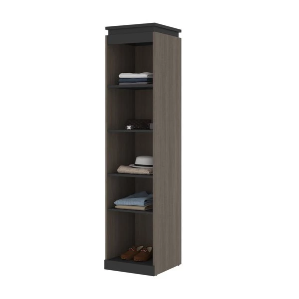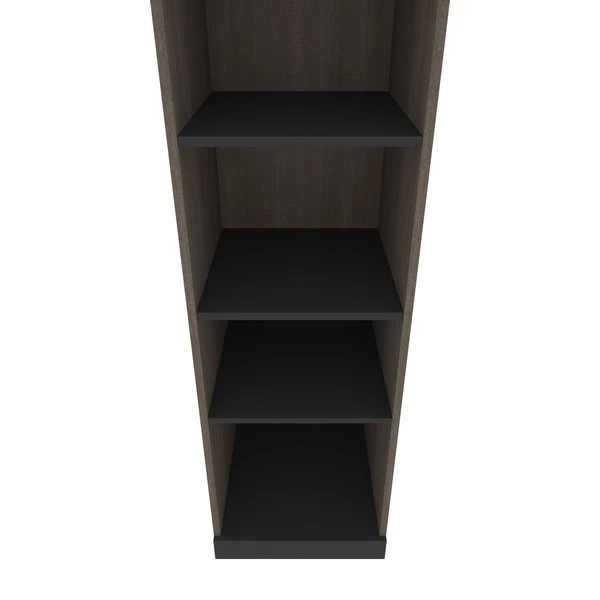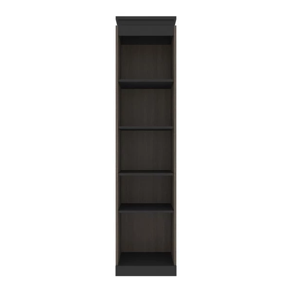 Keep your space organized with this Narrow Shelving Unit. With quality materials and 2 fixed shelves, this unit provides the utmost stability. The 3 adjustable shelves offer flexibility, allowing you to rearrange the unit to your liking. Each shelf can support up to 30 lb to keep your belongings safe. The elevated top is a unique design feature that adds flair to the Shelving Unit. The top has a weight capacity of up to 30 lb, meaning it can be used as an extra shelf. The unit coordinates beautifully with the Full or Queen Murphy Bed from the Orion collection (sold separately). Tested to meet ANSI/BIFMA quality standards for safety and performance.