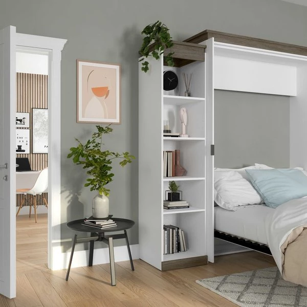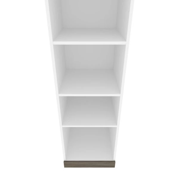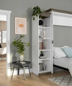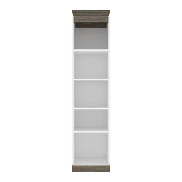 Keep your space organized with this Narrow Shelving Unit. With quality materials and 2 fixed shelves, this unit provides the utmost stability. The 3 adjustable shelves offer flexibility, allowing you to rearrange the unit to your liking. Each shelf can support up to 30 lb to keep your belongings safe. The elevated top is a unique design feature that adds flair to the Shelving Unit. The top has a weight capacity of up to 30 lb, meaning it can be used as an extra shelf. The unit coordinates beautifully with the Full or Queen Murphy Bed from the Orion collection (sold separately). Tested to meet ANSI/BIFMA quality standards for safety and performance.