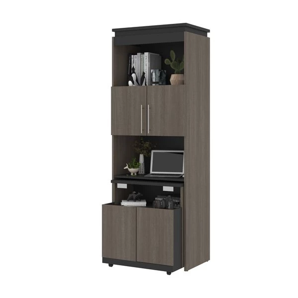 This ingenious piece of furniture allows you to fold out your desk when you need to work and retract it once your workday is done. The quality materials and unique design features make this Shelving Unit ideal for any multipurpose room. With a total of 2 closed and 3 open storage areas and 1 USB/power outlet, this unit offers everything you need to stay on task and organized. Pair this piece with an Orion Murphy bed to create the ultimate guest room/home office. Tested to meet ANSI/BIFMA quality standards for safety and performance.