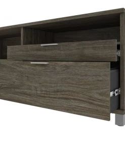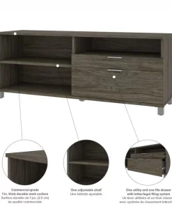 This Credenza is the perfect addition to any space. Specifically, your office will benefit from the additional storage. The drawers on ball-bearing slides offer space to conceal and organize your personal items and documents. With the shelves, you will be able to display your decorations, books, and pictures. This Credenza is