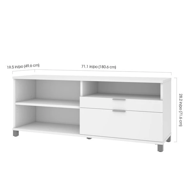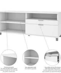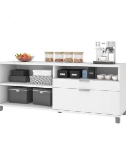 This Credenza is the perfect addition to any space. Specifically, your office will benefit from the additional storage. The drawers on ball-bearing slides offer space to conceal and organize your personal items and documents. With the shelves, you will be able to display your decorations, books, and pictures. This Credenza is