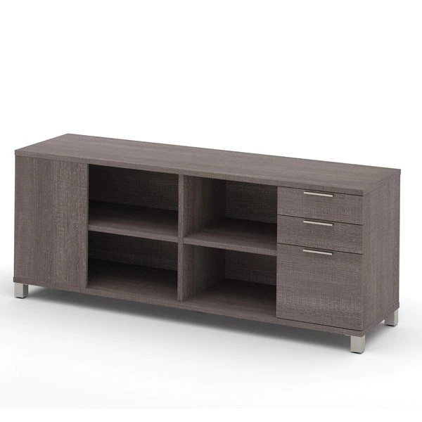 This Credenza is the perfect addition to any space. It is especially ideal for your office because it provides space for your equipment. The drawers on ball-bearing slides offer space to conceal and organize your supplies. The shelves allow you to display your decorations, books, and pictures. The metal legs add a contemporary touch to your space. This Credenza is
