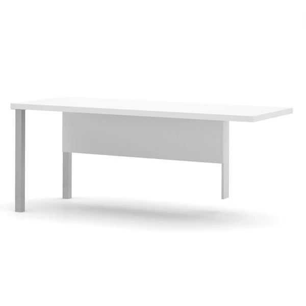 This modern Return Table allows you to extend your work surface. Combine it with a credenza from the same collection to create a practical L-Shaped desk. The square metal legs in matte silver finish add a touch of style to your workspace. Thanks to the durable laminate finish, the desktop resists everyday damage.