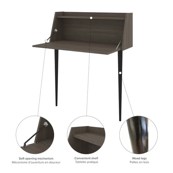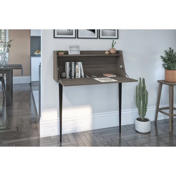 This modern Secretary Desk will provide you with space to store small items and supplies. It can easily be installed anywhere in your home due to its compact design. The work surface can be folded up when it isn’t being used. Since it must be anchored to a wall, this Secretary Desk is secure. This office desk is tested to meet ANSI/BIFMA quality standards for safety and performance. This Secretary Desk is