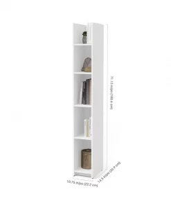 Within a compact space, choosing the right pieces of furniture is crucial in order to feel relaxed and comfortable. Maximize every square foot of your room with Bestar‘s Small Space units!It features 2 fixed and 3 adjustable shelves. The top and the bottom shelves are fixed. Assembly Required.