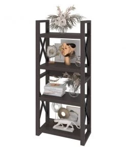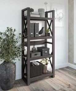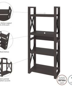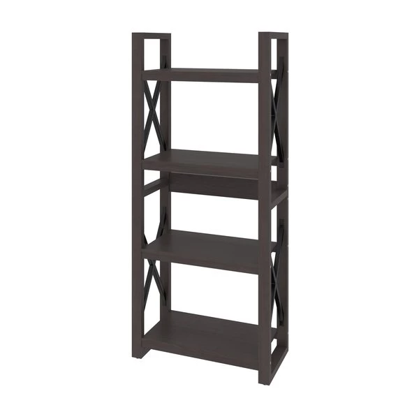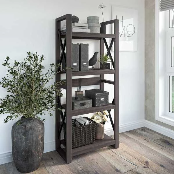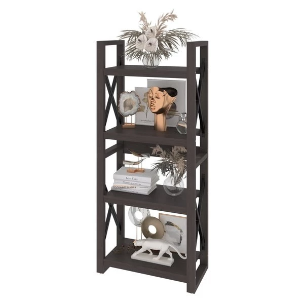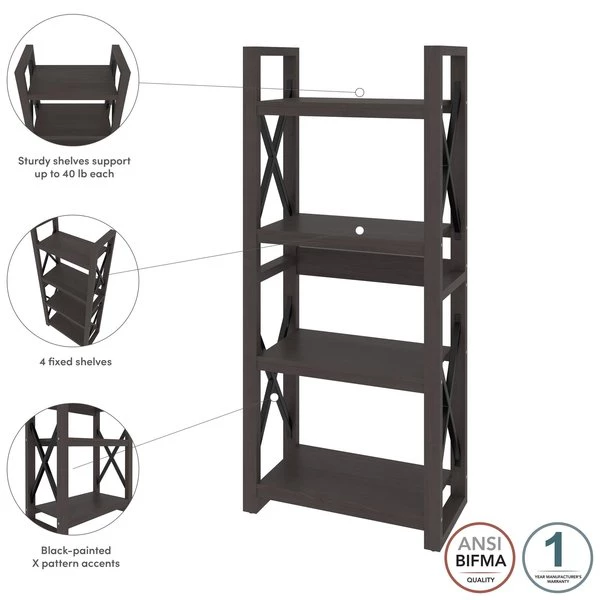 This beautiful bookcase is the perfect addition to a home office, library, or family room. The Bookcase’s sturdy and durable shelves feature a melamine finish to resist everyday damage. The black-painted steel X pattern accents create a unique contrast with the available finishes. The overall design contributes to a modern farmhouse decor. With four adjustable shelves, this Bookcase offers plenty of space to store your favorite books and display items. Each shelf can support up to 40 pounds of materials. The open design is airy and relaxed and allows you to show off the most beautiful items in your home. Tested to meet ANSI/BIFMA quality standards for safety and performance.