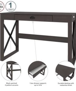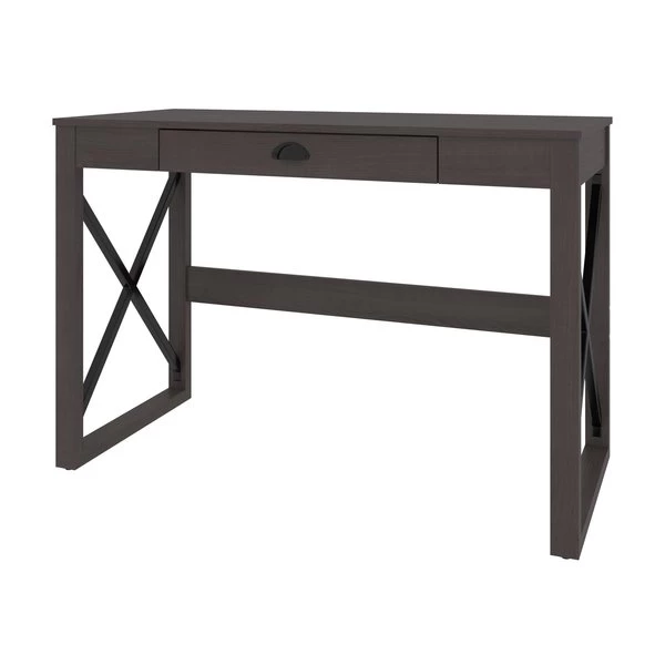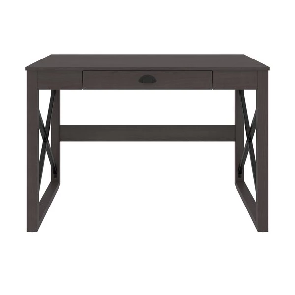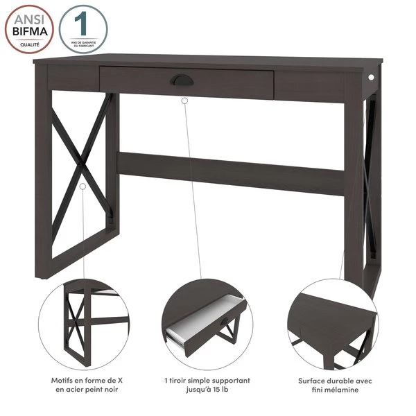 This small desk is perfect for furnishing a home office and offers a durable work surface designed to resist every damage from a bustling household. The contrast between the available finishes and the black-painted steel handles and X pattern accents contributes to a modern farmhouse decor. Keep small accessories nearby thanks to the box drawer which supports up to 15 lb of equipment and glides on smooth ball-bearing slides for easy and quiet use. This small desk is equally stylish and functional, making it easy to create a home office that not only meets your needs but also complements your personality and your decor.