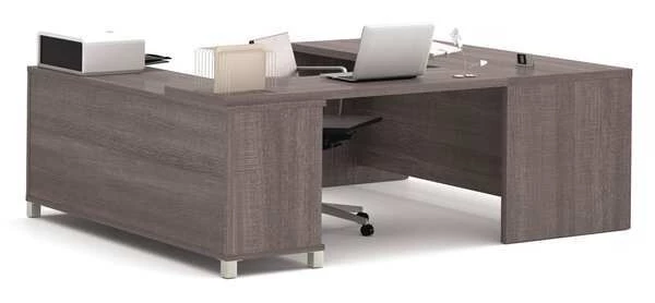 Bestar U Shaped Desk, 89" D, 71.1" W, 29.9" H, Bark Gray, Melamine