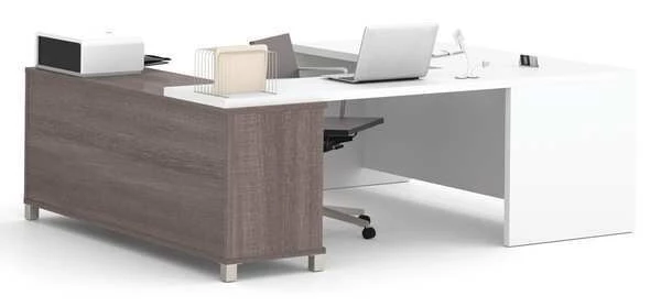 Bestar U Shaped Desk, 89" D, 71.1" W, 29.9" H, White/Bark Gray, Melamine