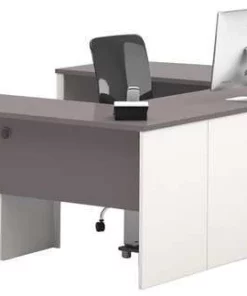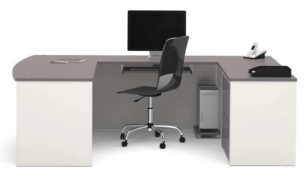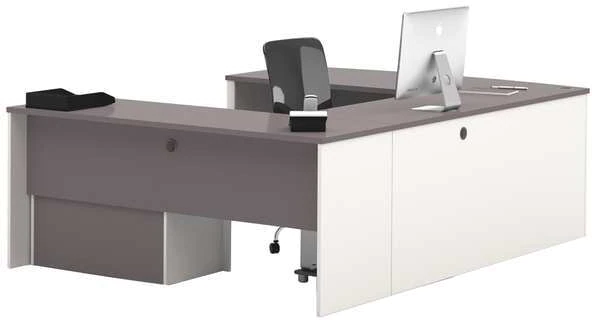 Bestar U Shaped Desk, 92.6" D, 71.1" W, 30.4" H, Slate/Sandstone, Melamine